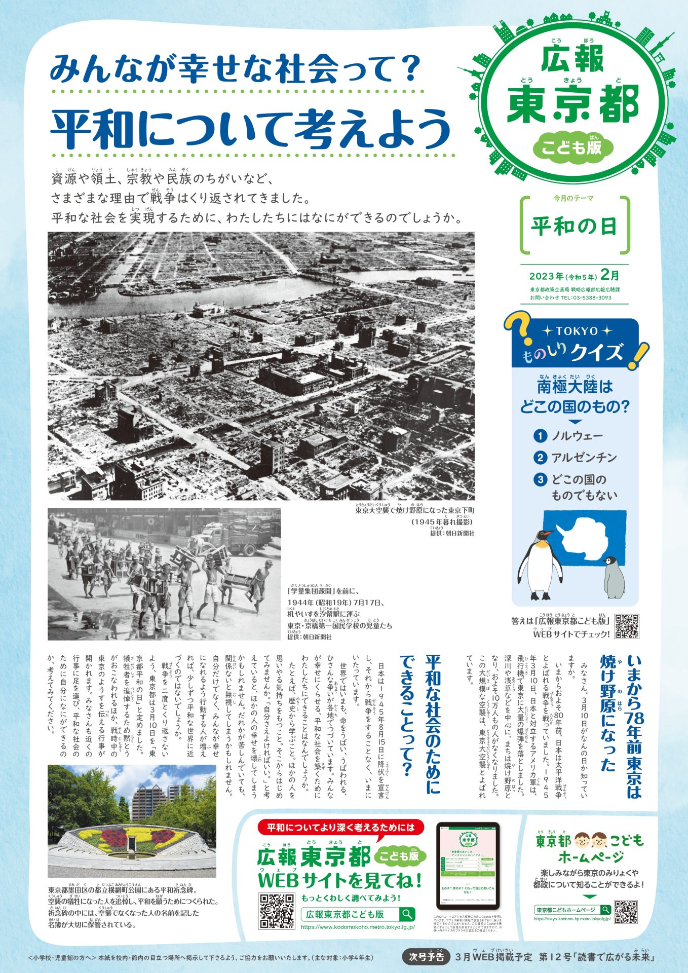 広報東京都こども版2024年2月号の記事の「おさらいワークシート」のデータがダウンロードできます。授業や家庭での学習などでご活用ください。