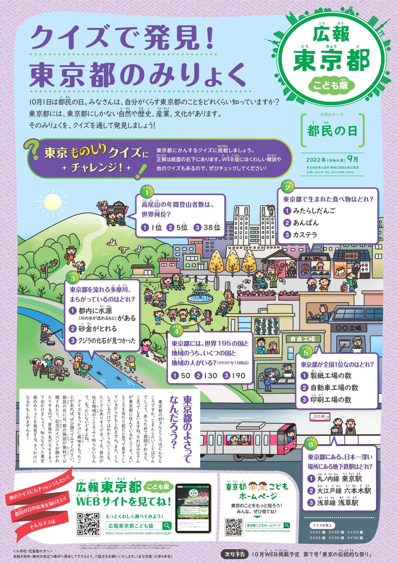 壁新聞「都民の日 ~クイズで発見! 東京都のみりょく~」2022年9月号